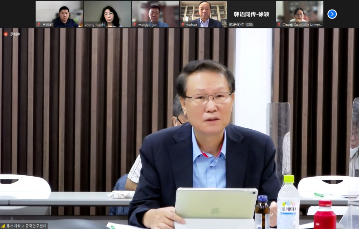 Professor Zhang Huizhi, Deputy Director of the Northeast Asian Research Center and Director of the Institute of Korean Peninsular Studies of Jilin University, presided over the opening ceremony, and Professor Wu Hao, Dean of Northeast Asian Studies College of Jilin University and Professor Shin Jung-seung, Director of the Department of East Asian Studies of Dongseo University and former Ambassador for the Republic of Korea to the People’s Republic of China, respectively delivered speeches at the opening ceremony. More than 20 Chinese and Korean experts and scholars from Jilin University, Dongseo University, Dong-A University, Pukyong National University, Dongduk Women University, Kookmin University and other institutions in Korea attended the conference and discussed on the topics of Opportunities and Challenges in the Development of China-Korea Diplomatic Security Relations, China-South Korea Economic Relations: New Dynamics of Competition and Cooperation, and China-South Korea Relations and the Direction of the Regional Situation in Northeast Asia.