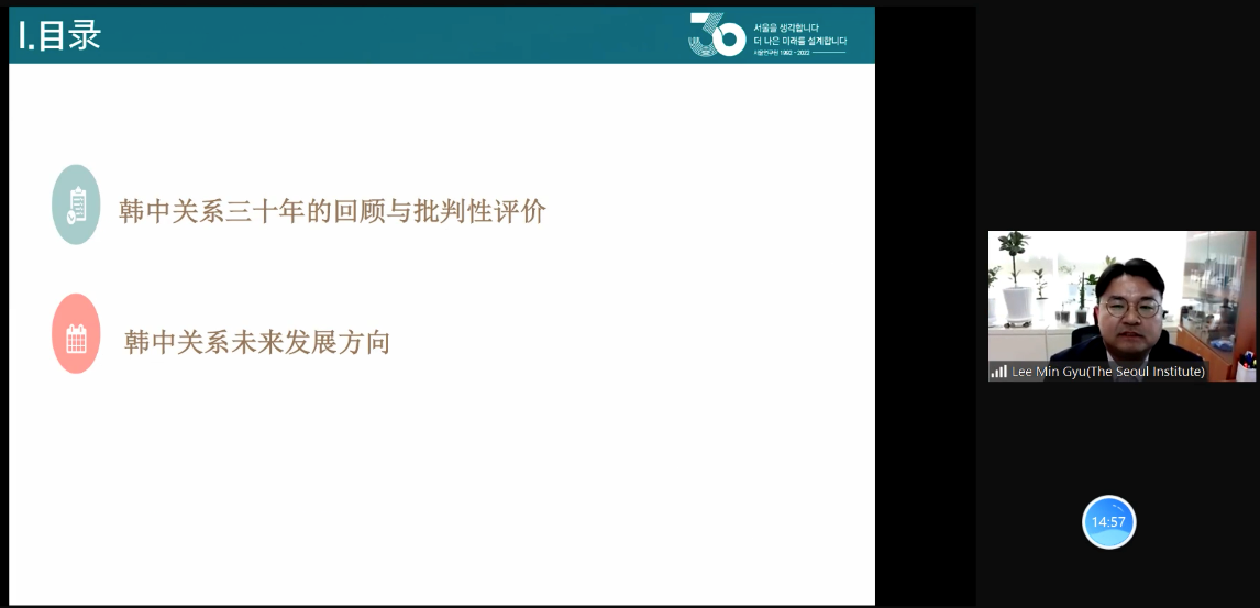 In his lecture, Professor Lee reviewed the achievements of China and South Korea in the past 30 years since the establishment of diplomatic relations and the changing trends in the relations between the two countries. He analyzed the factors influencing the Sino-Korean relationship from both internal and external perspectives, with historical and political developments and exchanges between the two countries as internal factors influencing the relationship, while various initiatives by the United States and North Korea have added many uncertainties to the Sino-Korean relationship. He also looked forward to the future development of China-Korea relations, saying that China and South Korea should establish a crisis management program, shift from "seeking common ground while reserving differences" to "seeking common ground and resolving differences", understand each other and ensure stability in the Northeast Asian region, and then promote exchanges and cooperation among all parties.