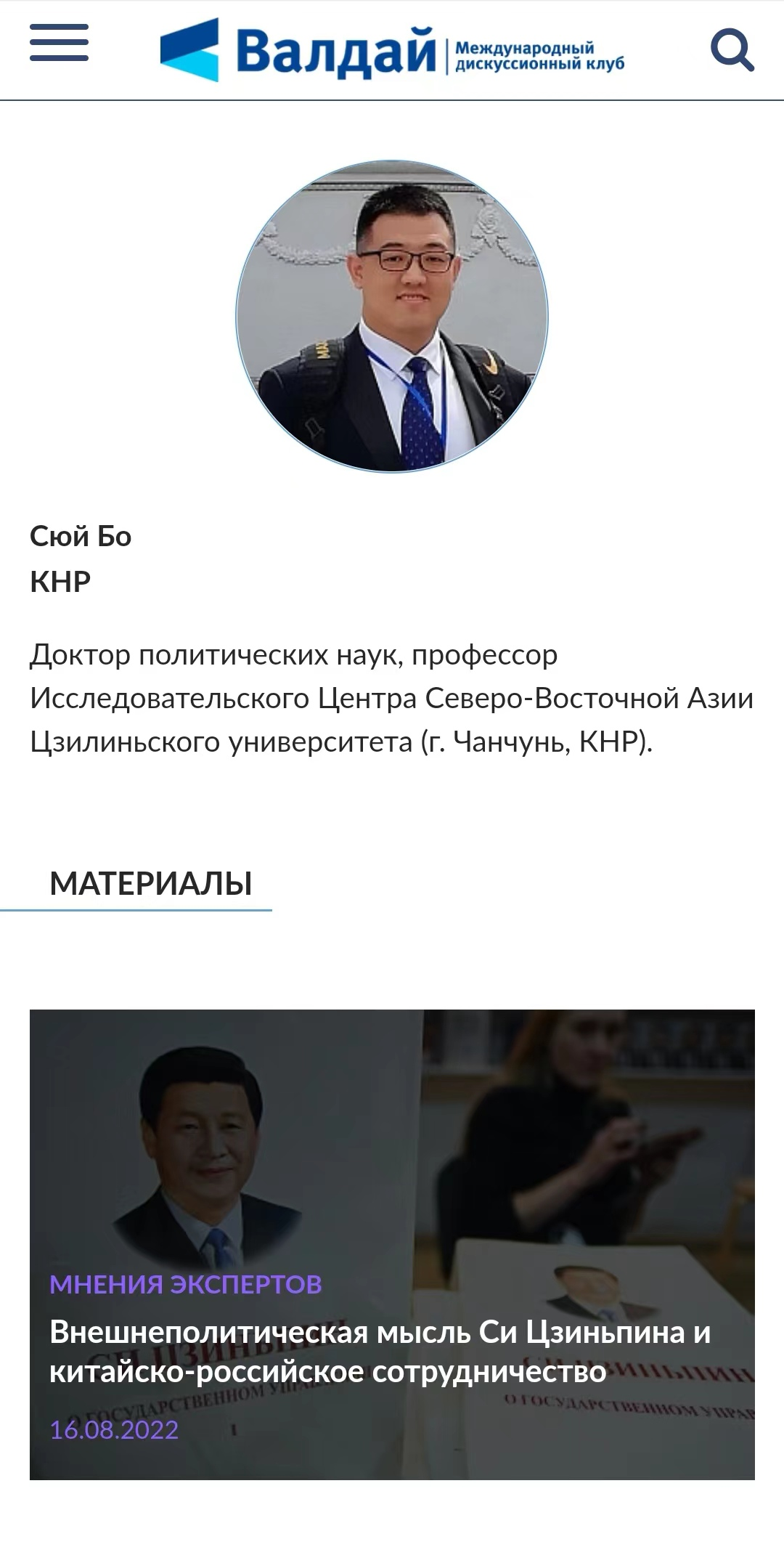 Professor Xu Bo Has His Article on Xi Jinping’s Foreign Policy Thinking Published on the Official Website of “Valdai Club”, a Russian think tank