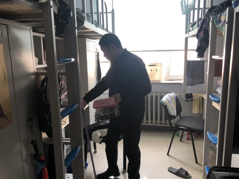 扫黑除恶在行动》宣传单,向同学们介绍了“全国扫黑除恶专项斗争”活动的意义和目的,分析了同学们身边可能出现的黑恶势力,提醒同学们要提高警惕同时鼓励同学们要敢于揭发举报身边的黑恶势力,为创造和谐校园贡献自己的一份力量。同时还进行了春季寝室消防安全检查,重点排查寝室安全隐患及违章电器的使用情况,并告知同学们春季天干物燥是火灾频发季节,不使用大功率电器,不私拉电线、乱接电源,提升消防安全意识,防止火灾的发生。