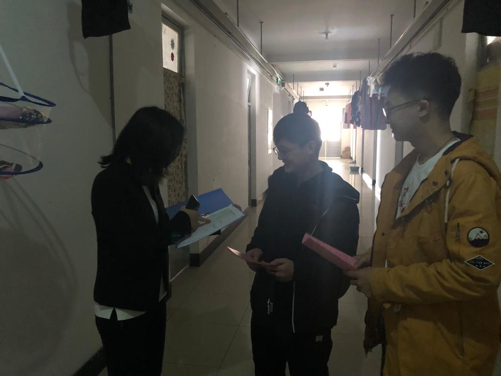 4月12日,主管研究生工作副书记张剑宇带队深入学生寝室向同学们发放《博彩平台