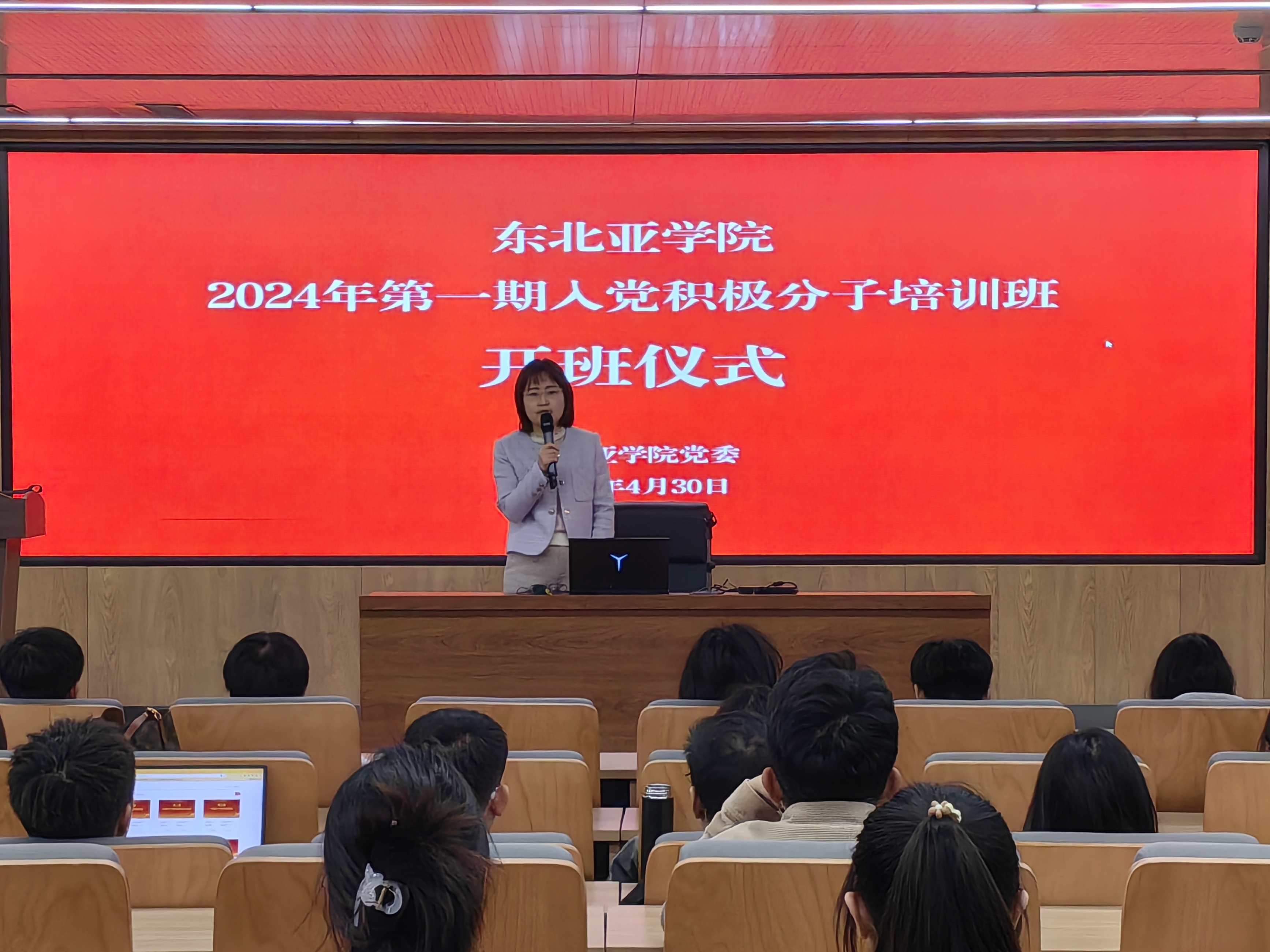 仪式开始,赵毅博老师首先对同学们积极要求加入党组织的行为表示肯定和鼓励,概述了党员的发展流程,阐述了举办入党积极分子培训班的学习目标与意义,并提出期望和要求。她表示,入党积极分子应当坚定理想、明确目标、脚踏实地、勤勉奋斗,以更高标准严格要求自己,全面做强自己,鼓励各位入党积极分子在群众中做好先锋模范带头作用,坚持从群众中来、到群众中去,践行为人民服务、为同学们做好服务。辅导员山丹老师具体介绍了入党流程和存档材料中需要重点注意的内容,并督促同学们按时保质保量完成学习任务。