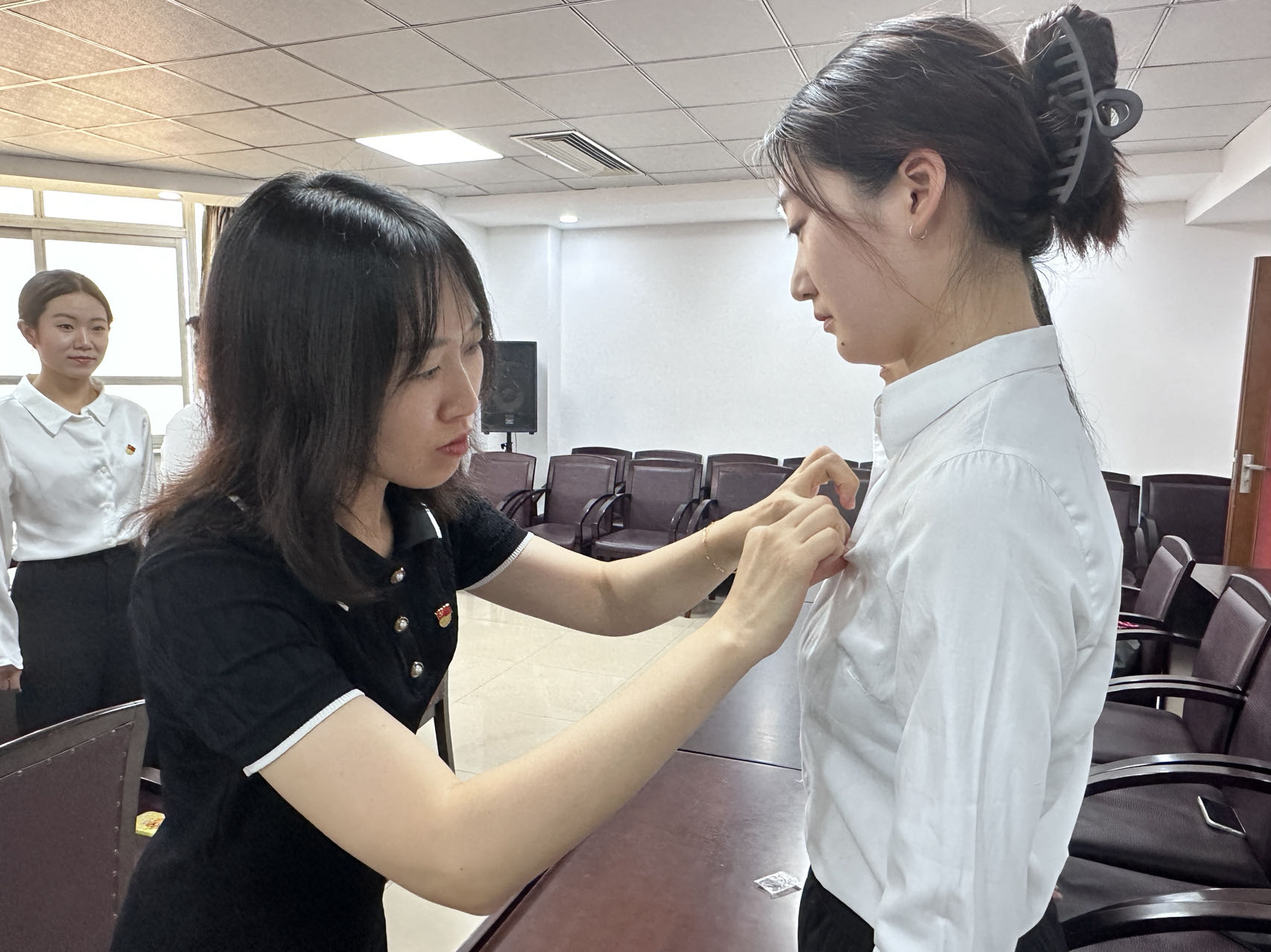 最后,赵毅博书记为全体新入党的同志们佩戴了党徽,并代表博彩平台