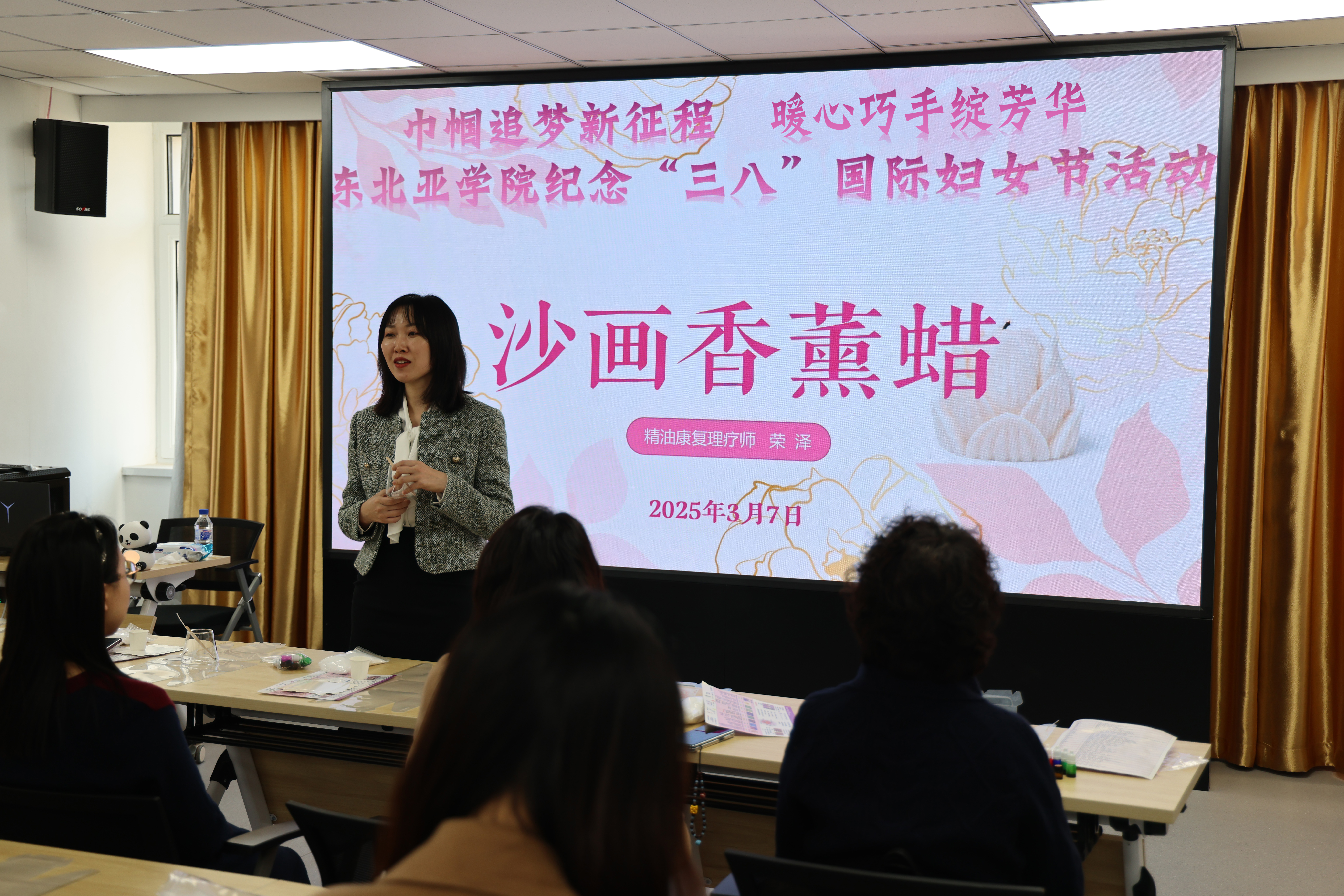 三月芳菲,灼灼韶华,为深入学习贯彻党的二十届三中全会精神和习近平总书记重要讲话精神,丰富女教职工文化生活,团结凝聚巾帼力量,博彩平台 在第115个“三八”国际妇女节来临之际,组织开展了“巾帼追梦新征程,暖心巧手绽芳华”沙画香薰蜡制作活动。
