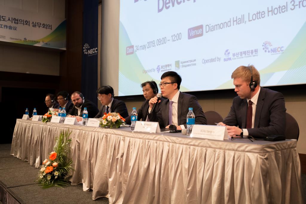 “第二届北方经济城市协议会”由俄罗斯符拉迪沃斯托克市主办,中国黑龙江省、吉林省、韩国釜山市、日本新潟市、舞鹤市等地有关政府部门及研究机构、企业代表参会,共同围绕“扩大东北亚经济合作的城市间合作方案(以物流、旅游为中心)”的主题展开讨论与交流。