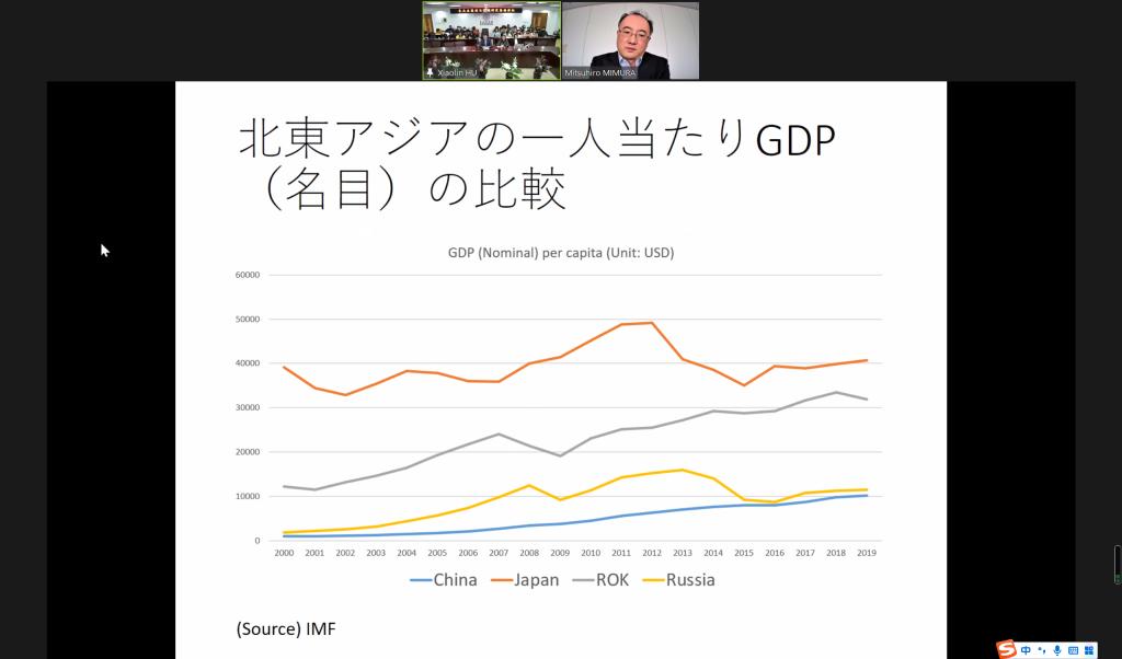 日本研究所的邀请,日本环日本海经济研究所调查研究部主任研究员、日本东北亚学会三村光弘(MIMURA MITSUHIRO)会长,做了以“东北亚区域合作必要的基本要素—以平等互利为基础的横向关系为目标—”为主题的学术讲座。本次讲座采取了线上和线下相结合的方式,由博彩平台