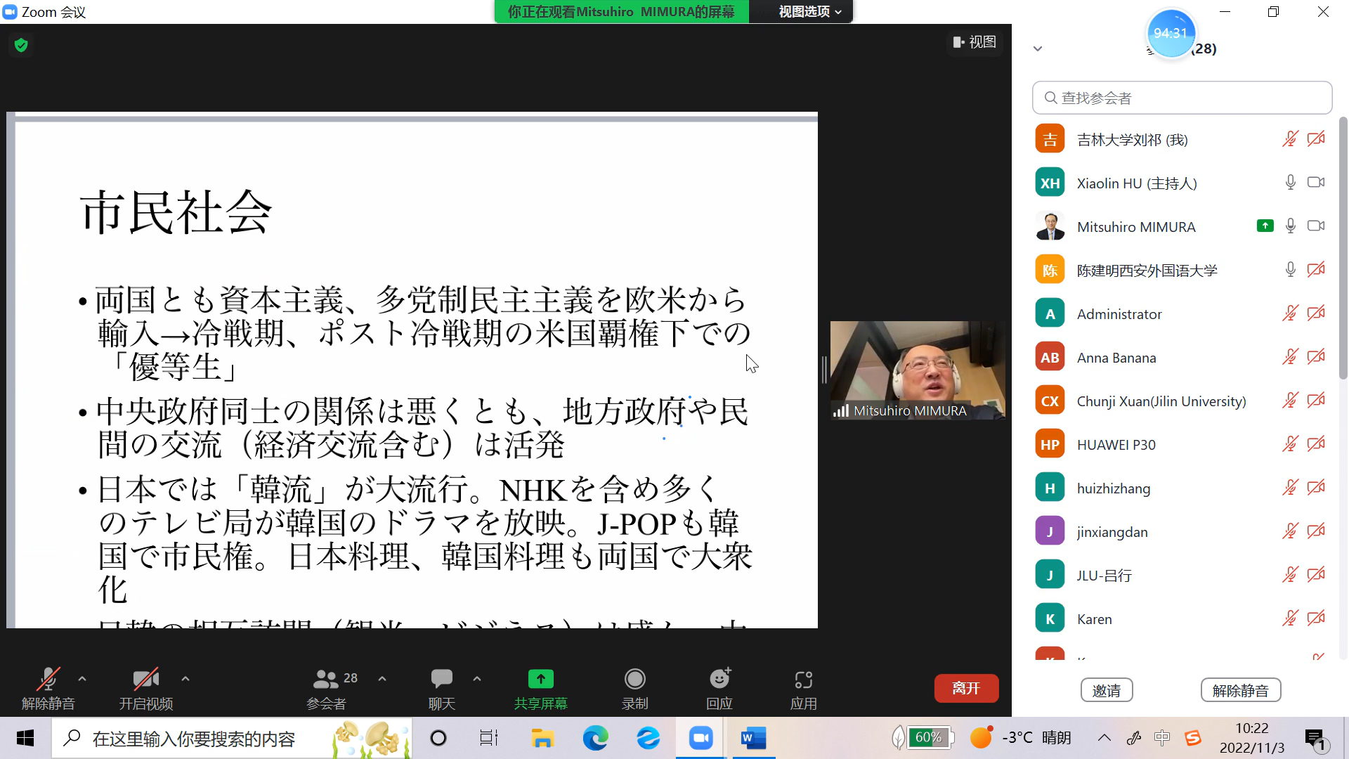 2022年11月3日,“东北亚国别与区域研究高端讲坛”之“现代日韩关系的决定因素”在博彩平台