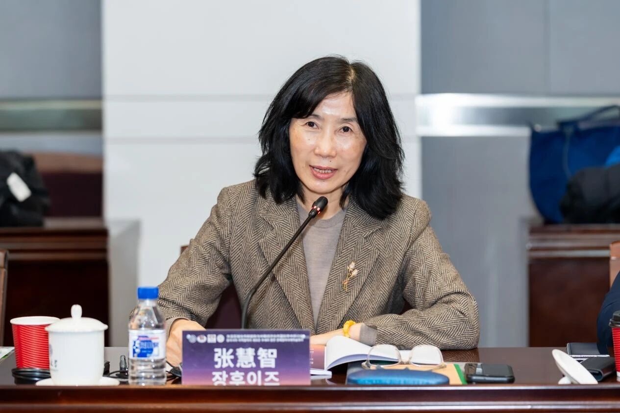 张慧智教授对韩方学者的到来表示热烈欢迎,认为在当前国际局势深刻变化的背景下,韩国新政府提出以国家利益为基础的务实外交为中韩关系带来了新的机遇,今年APEC峰会期间两国元首会晤及相关合作协议的签署也为中韩经济合作注入了强劲动力,并表示中韩合作对东北亚和平稳定具有重要意义。