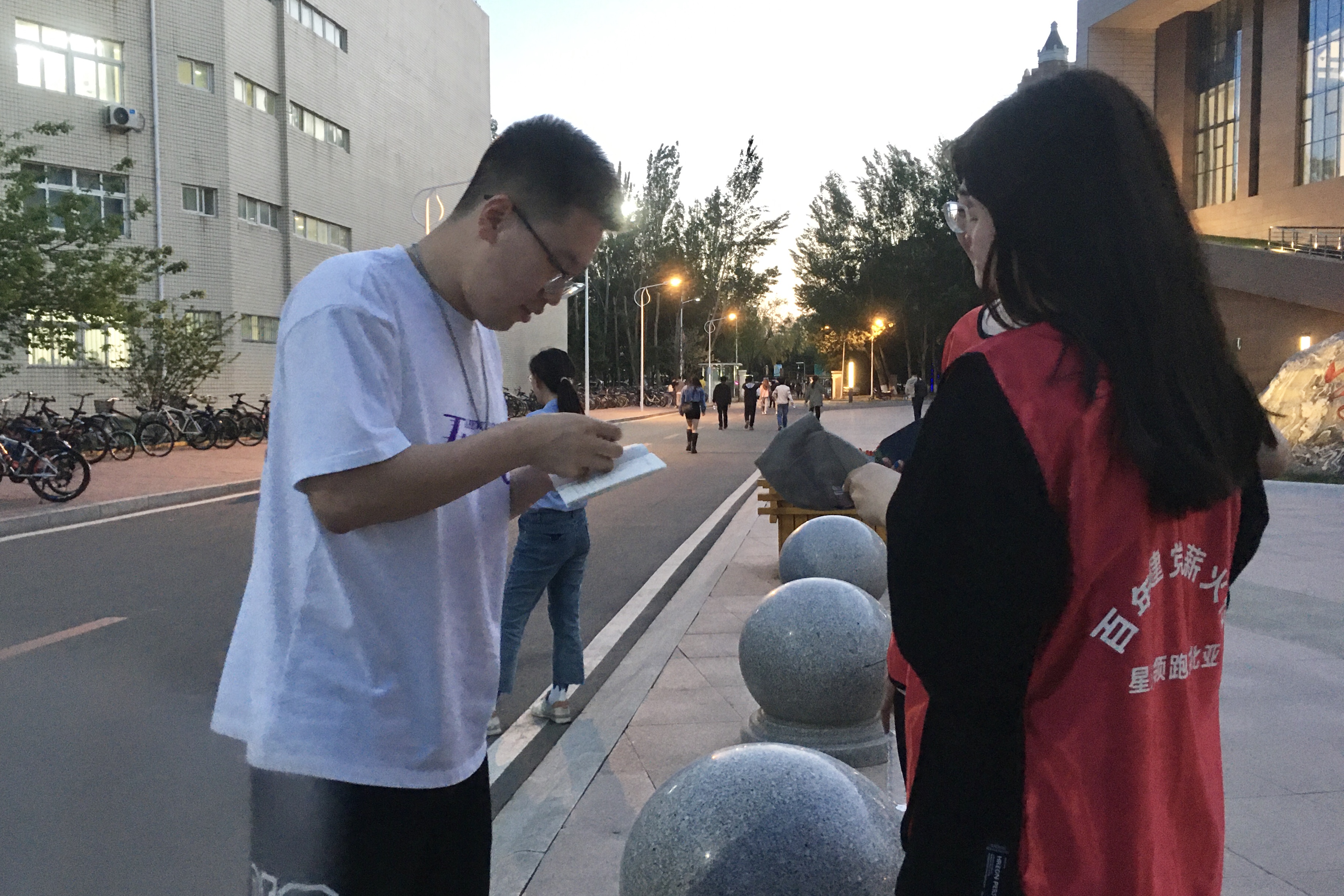健儿的风采。同学们的速度大大超出预期,甚至有同学跑出了配速每公里五分十秒内的好成绩。在夜跑的终点处,研会成员们为完成全程的同学在夜跑打卡手册上贴章留念。