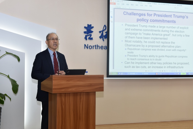 河合正弘教授在报告中首先谈到了特朗普政府上台后奉行的“美国优先”原则,认为在在经济全球化的今天,特朗普的上台为美国经济乃至全球经济增加了不安定的因素。接下来,河合正弘教授具体介绍了特朗普政府提出的宏观经济政策,并且指出宏观经济政策与贸易政策存在着矛盾之处,这些政策实施后会导致美国贸易保护主义提升、美国贸易交涉缓和等后果。最后,河合教授指出,面对特朗普政府上台后推行经济政策所产生的影响,本质上还要在于增强本国自身经济实力,中方更应该加大开放力度,服务市场应进一步开放,保持经济强劲势头。中日韩三国应在加强区域合作和的基础上不断推进,建立稳定的亚洲金融市场。