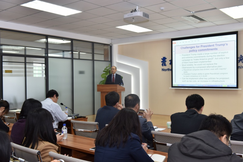 师生作了题为“特朗普新政权与中日韩三国经济合作关系”的学术报告,报告会由于潇院长主持,博彩平台