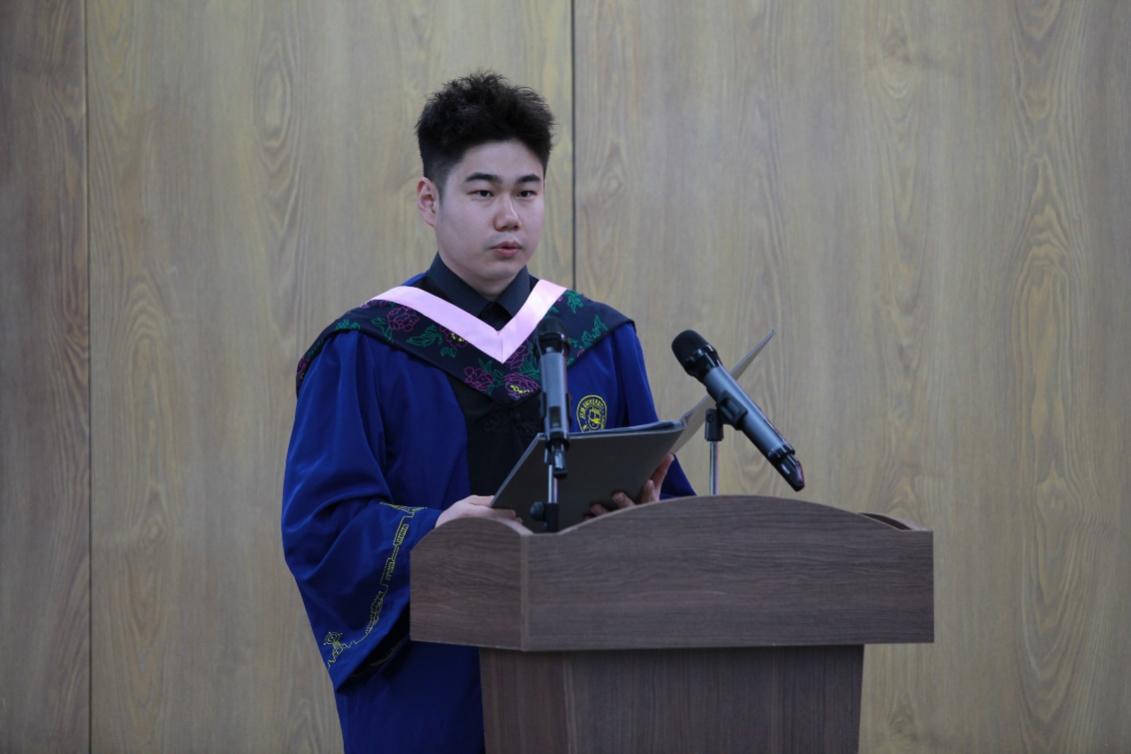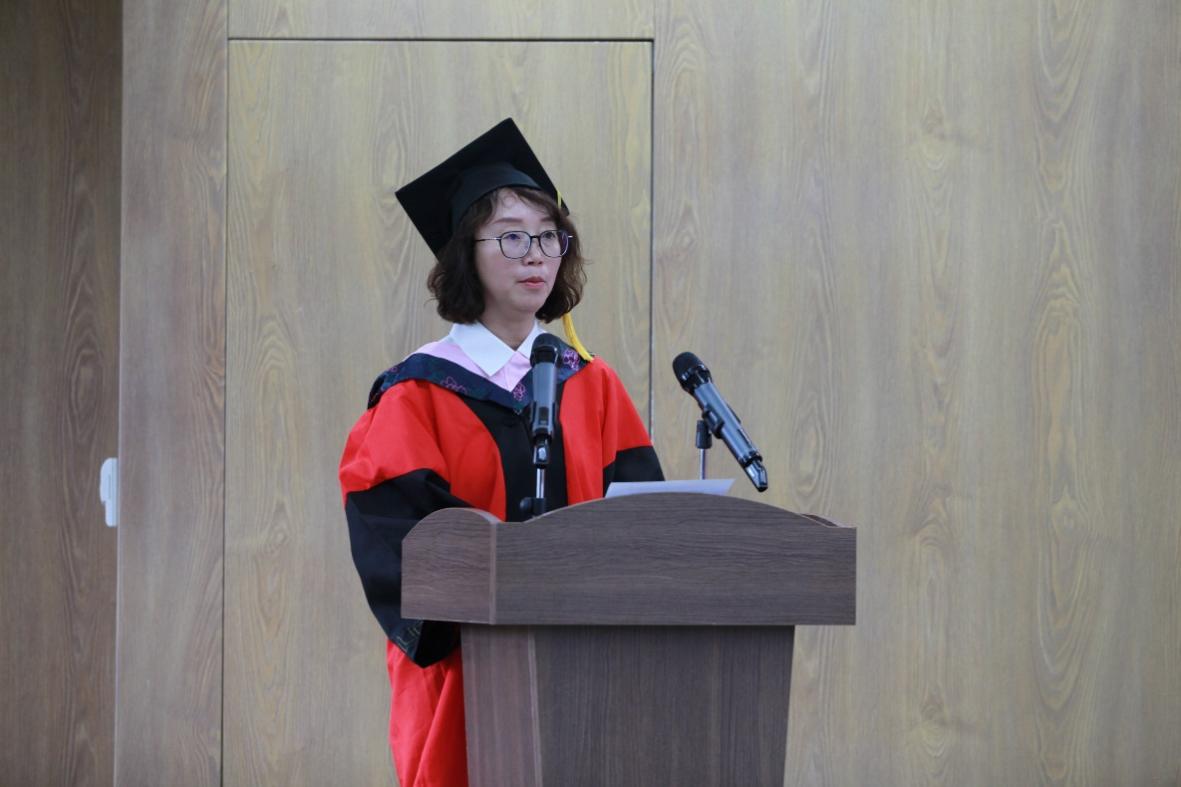 导师代表侯健明老师首先对在场的毕业生表示祝贺,恭喜他们顺利通过课程考试和论文答辩获得学位。他回忆了与同学们的点点滴滴,希望各位毕业生能够带着这些经历与教诲,创造自己的未来。最后,他期待同学们学以致用、拥抱挑战、不断进步,尽快得到社会的认可。
