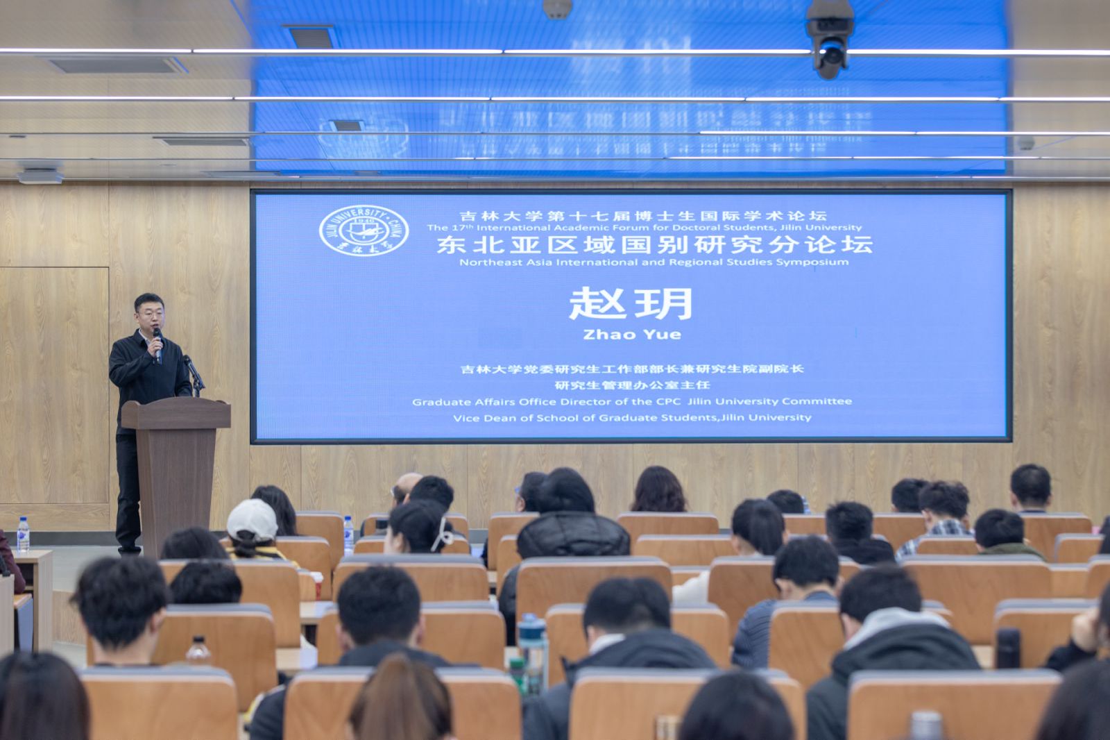 党委研究生工作部部长兼研究生院副院长、管理办公室主任赵玥,院党委书记赵毅博,副院长崔健,副院长刘汉君,以及来自国内高校的博士研究生及东北亚区域国别研究领域专家学者参加。
