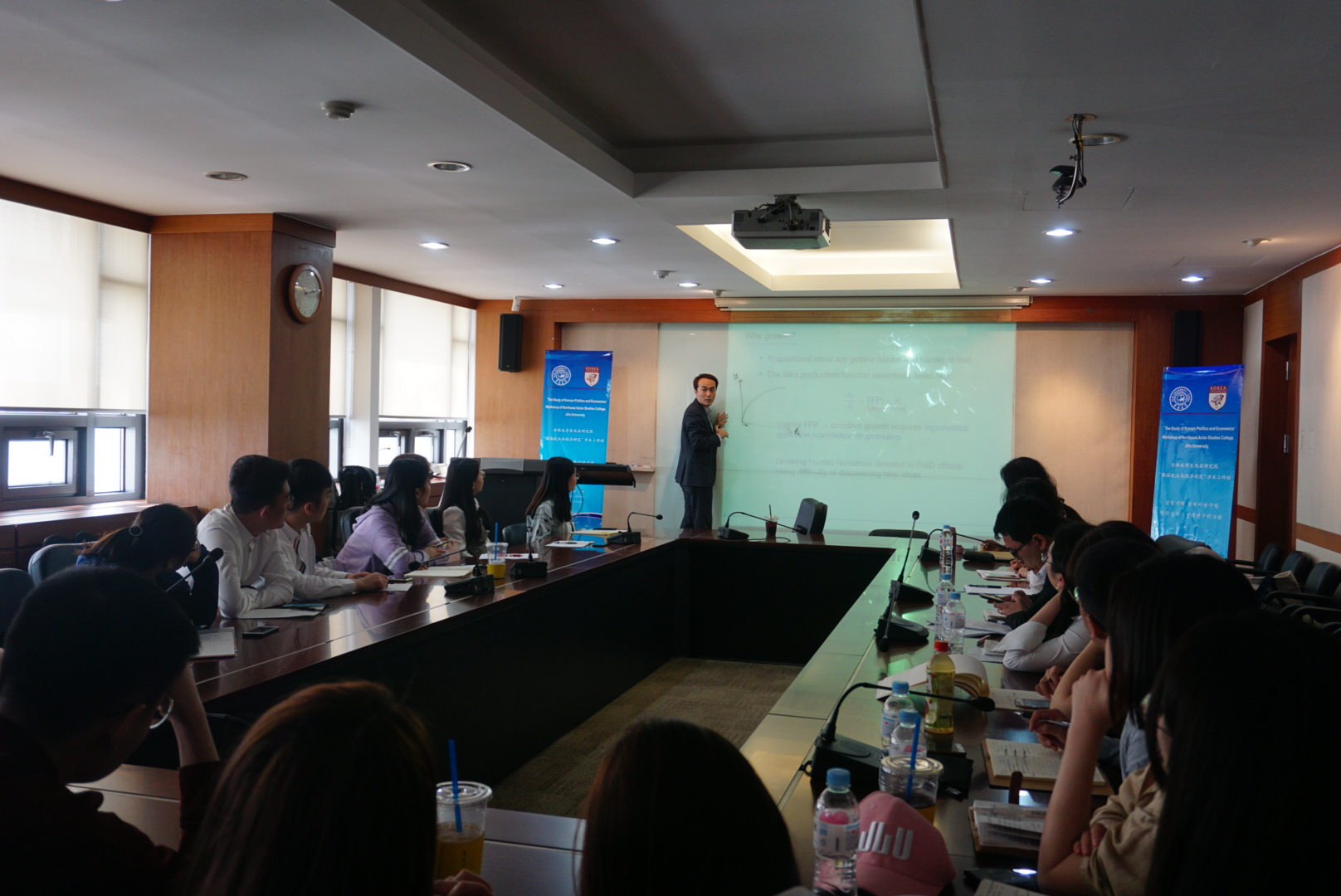 在韩调研期间,访学团先后赴高丽大学和韩国统一研究院进行学术访问,与韩方学生和研究人员就韩国对外政策国内政治、经济根源问题展开广泛交流和深入探讨。韩方多名经济学、政治学等领域的资深学者为博彩平台 师生举办了主题讲座:高丽大学政治外交系李正南教授为访学团师生做了“在中美竞争背景下,韩国的对中国的态度和政策”的主题讲座,表示韩国外交政策受中美关系走向影响较大,当需要在部分国际问题中做出外交决策时会十分困难;高丽大学的郭斗焕教授为访学团师生做了“经济增长与技术发展关系”的主题讲座,指出TFP(全要素生产率)是促进经济增长的核心,但其作用会随着时间的发展而逐渐减弱;高丽大学的李永旭教授为访学团师生做了“经济共同体的建立--东亚金融区域主义”的主题讲座,通过对国际货币基金组织和亚洲基础设施投资银行的分析,讨论了东亚地区机构合作的两种形式--霸权合作和非霸权合作;高丽大学亚细亚问题研究所所长李钟和教授为访学团师生做了“亚洲世纪,如约而至?”的主题讲座,分享了关于亚洲经济转型问题和亚洲社会文化等方面的观点。韩国统一研究院的专家学者就“文在寅的韩半岛政策--和平与繁荣的韩半岛”做了主题讲座并与博彩平台 师生展开了交流讨论。调研期间,博彩平台 研究生与高丽大学在校学生进行了座谈交流,中韩两国学生间交流顺畅,气氛活跃,学生们收获颇丰,交流和考察活动取得了良好的效果。