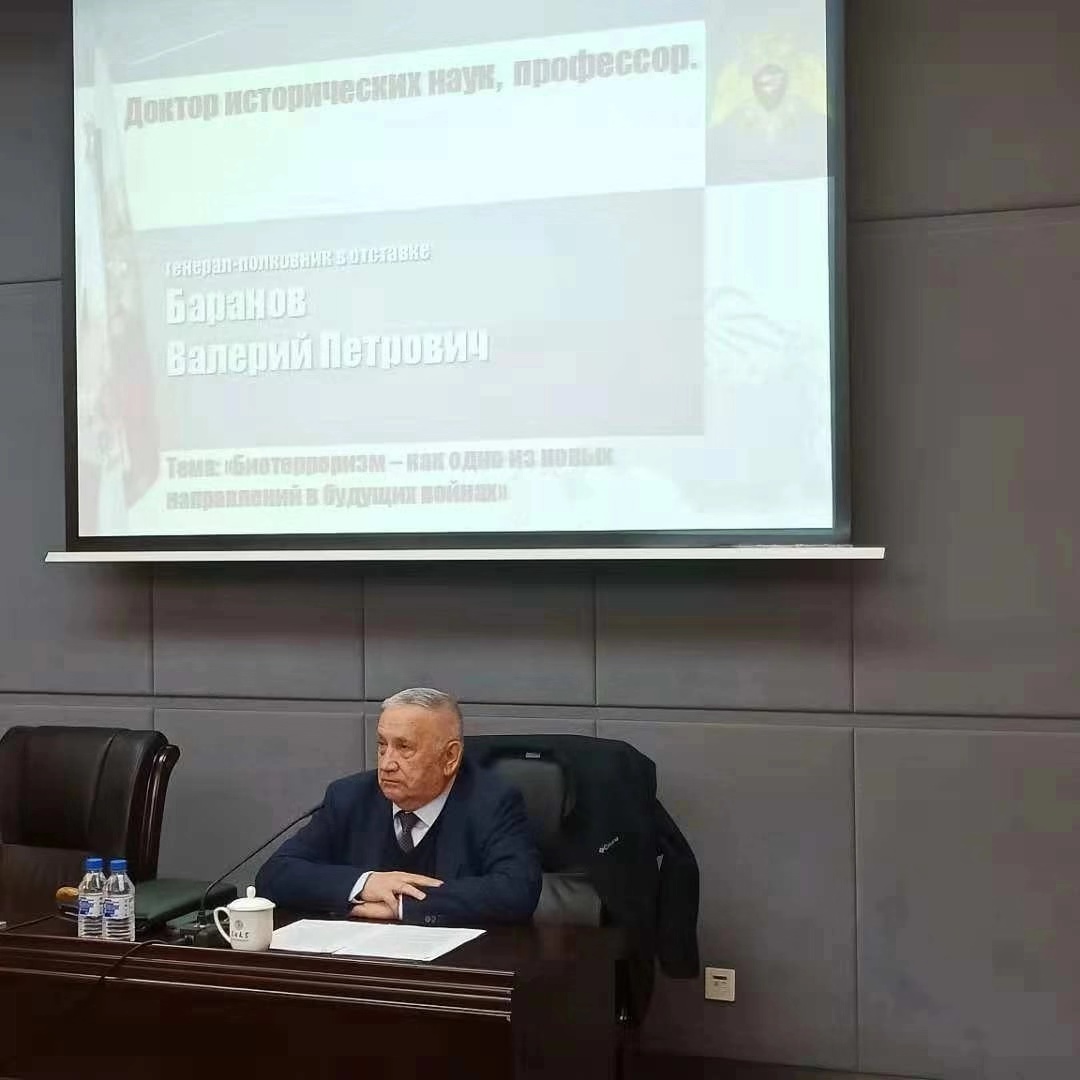 在讲座中,巴拉诺夫将军首先讲述国际恐怖主义产生的历史和现实根源,认为以美国为中心的世界“风暴结构”形势,是形成美国作为和平的风暴中心,而外围国家确是混乱的根本原因。巴拉诺夫将军在深入考察了历史上几次重大国际恐怖主义事件和几个国家的特殊军队力量,对世界恐怖主义新特点和俄罗斯维护国家安全的主要政策和前景做了总结。最后巴拉诺夫将军分析了目前恐怖主义威胁中俄安全的主要表现、存在的问题和解决途径。