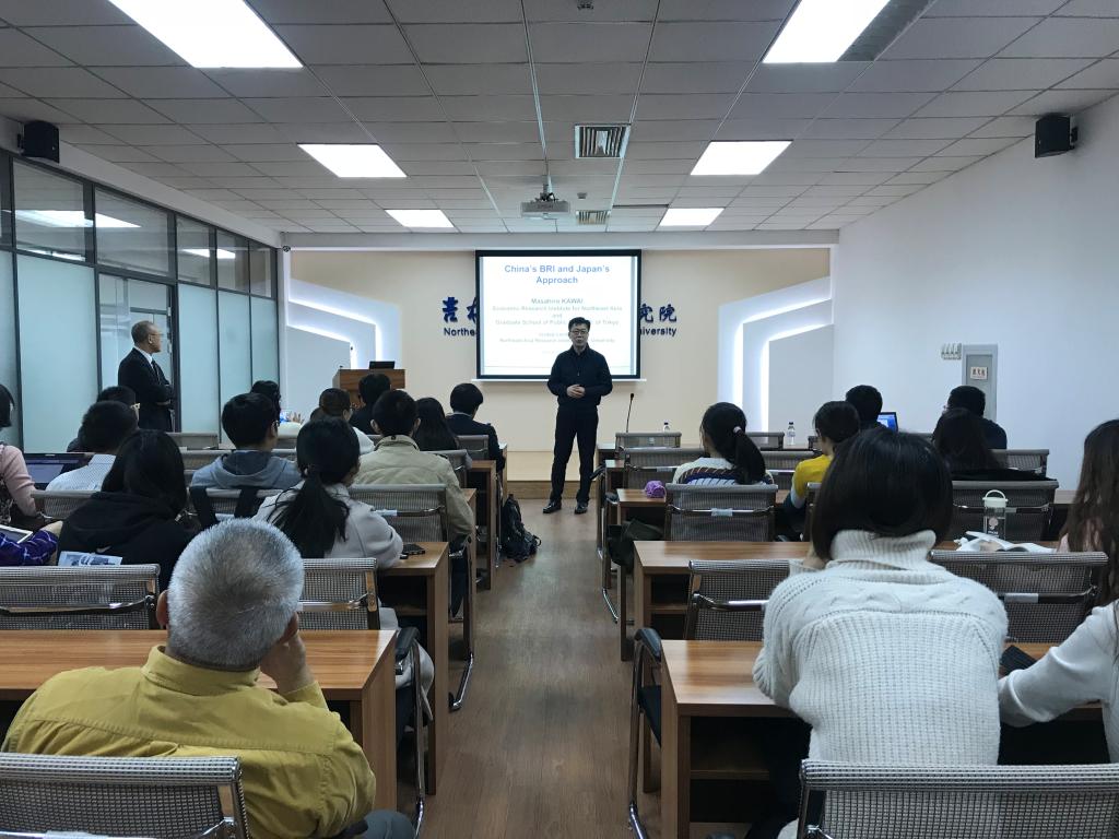 作了一场题为“一带一路构想与自由开放的印度太平洋战略”的学术讲座。东北亚研究院王彦军副院长主持,东北亚研究院日本研究所师生出席并聆听了报告。