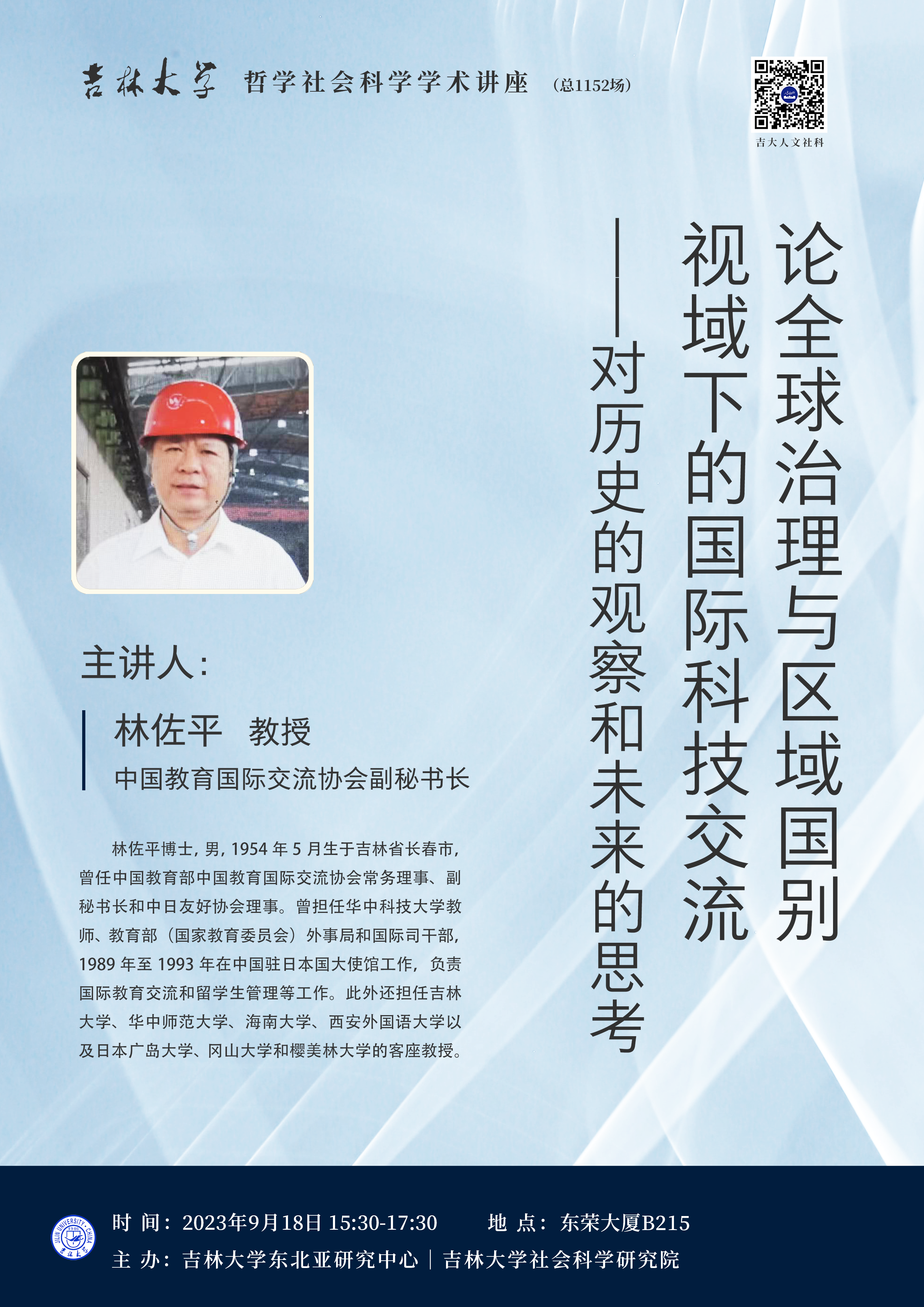 学术预告:博彩平台 哲学社会科学学术讲座——论全球治理与区域国别视域下的国际科技交流