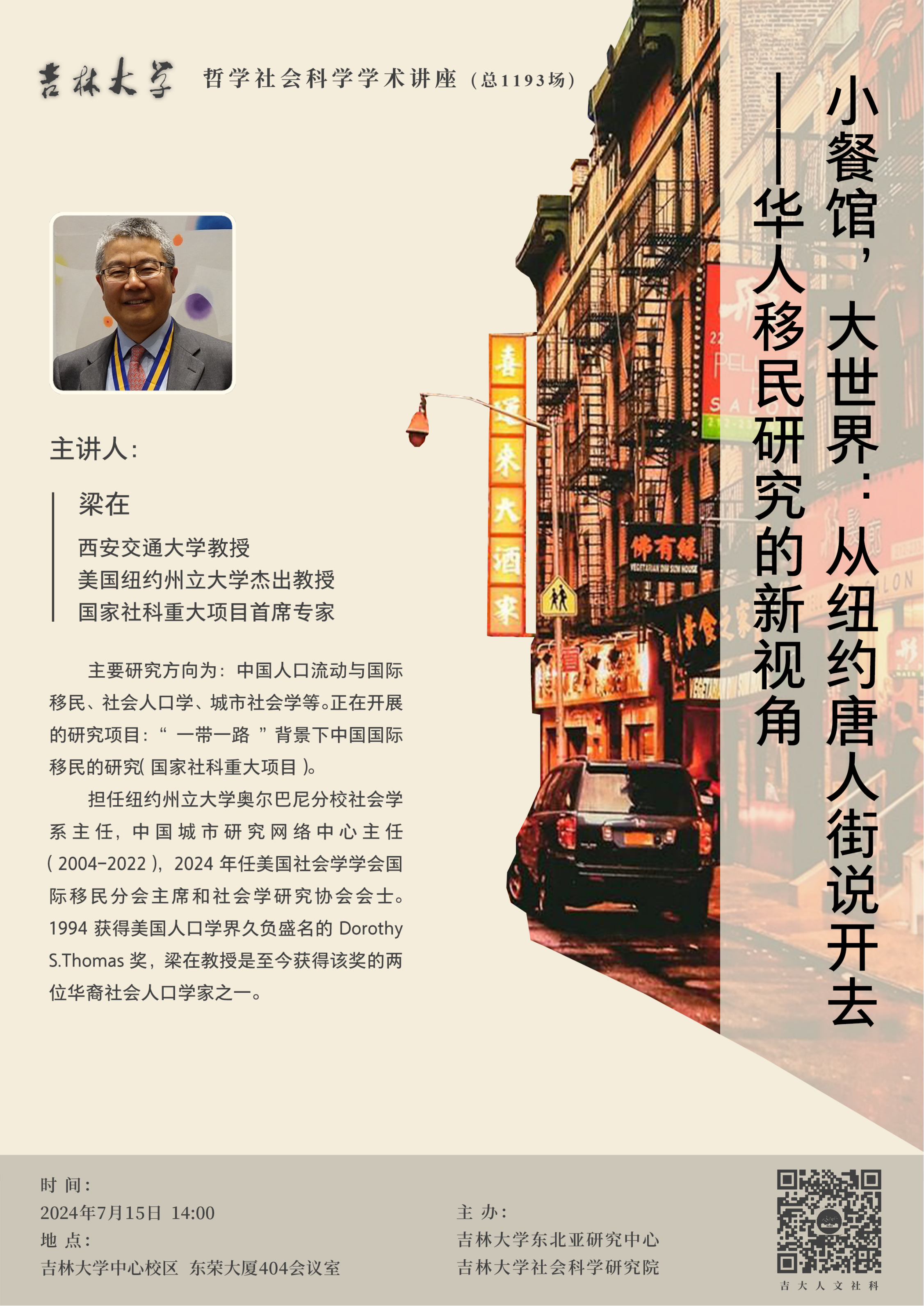 学术预告: 博彩平台 哲学社会科学学术讲座——“小餐馆,大世界:从纽约唐人街说开去——华人移民研究的新视角”