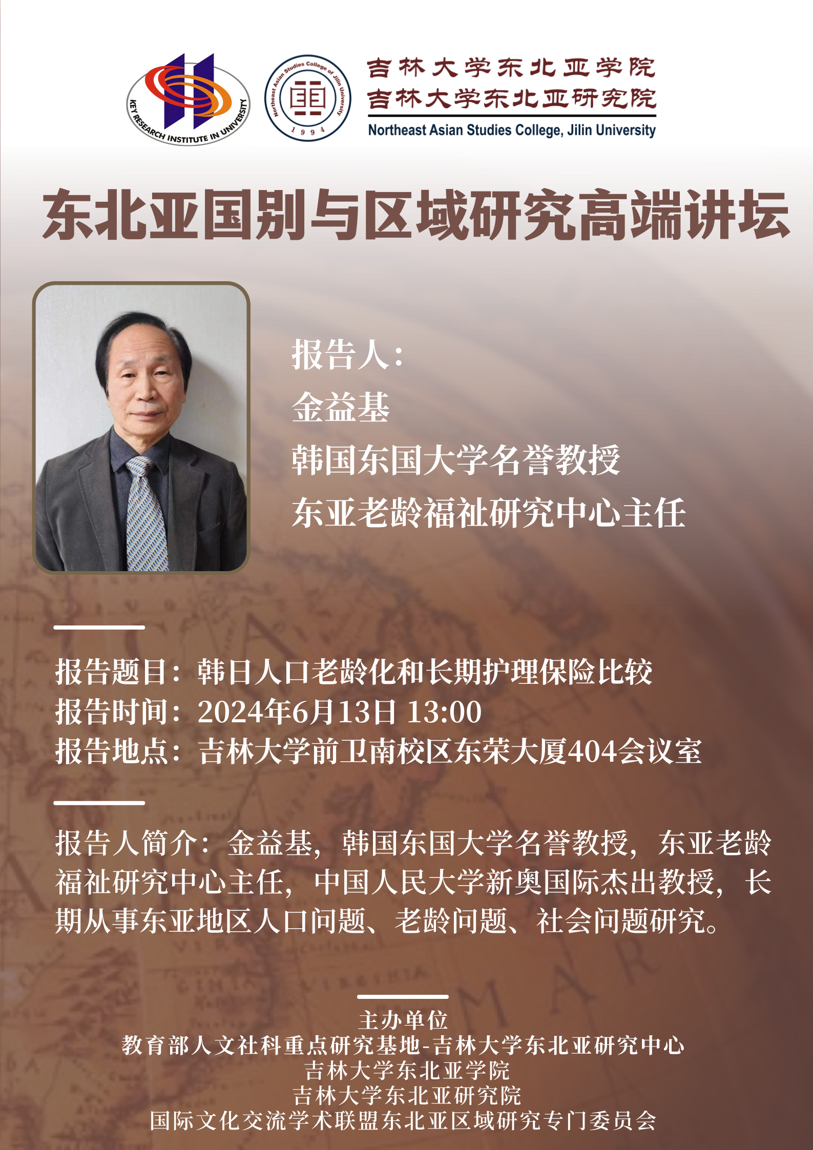 学术预告:东北亚国别与区域研究高端讲坛(2024年第5场)——韩日人口老龄化和长期护理保险比较
