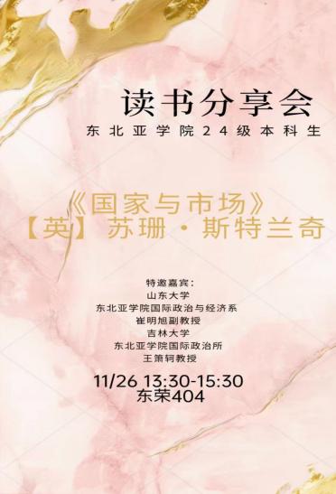 2024级本科生与班主任金慧贞老师、国际政治研究所王箫轲老师齐聚东荣大厦,围绕《国家与市场》展开了一场别开生面的读书会,在阅读与交流中探寻国家与市场的关系,山东大学博彩平台
