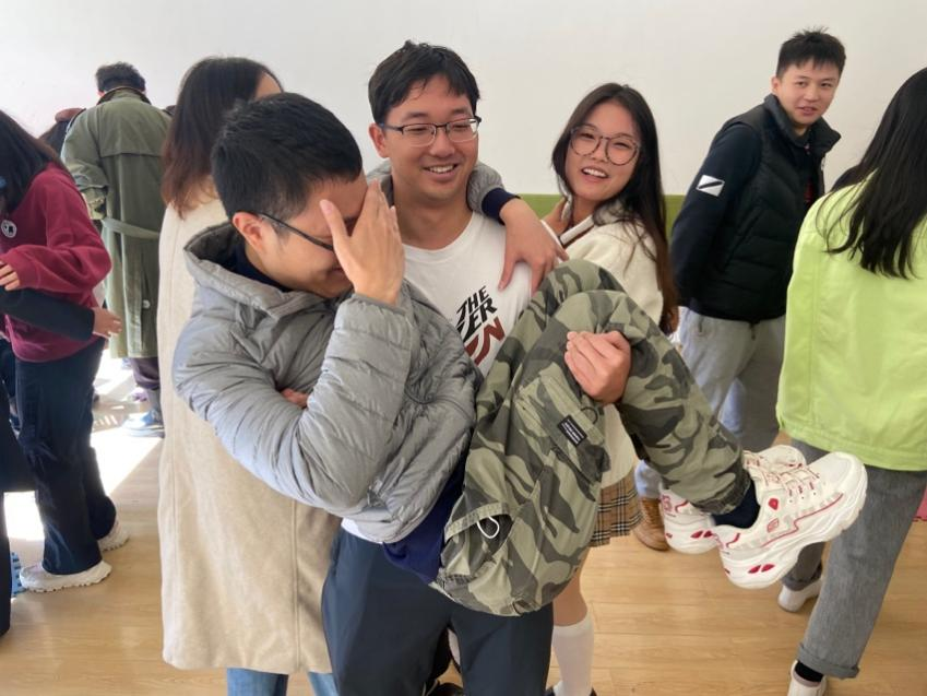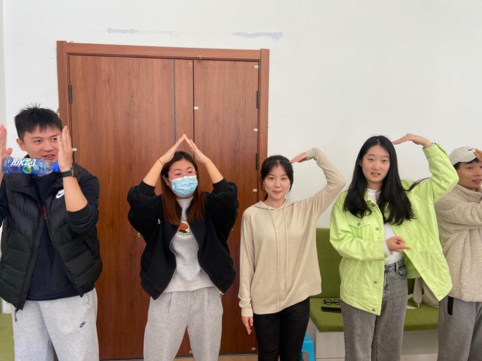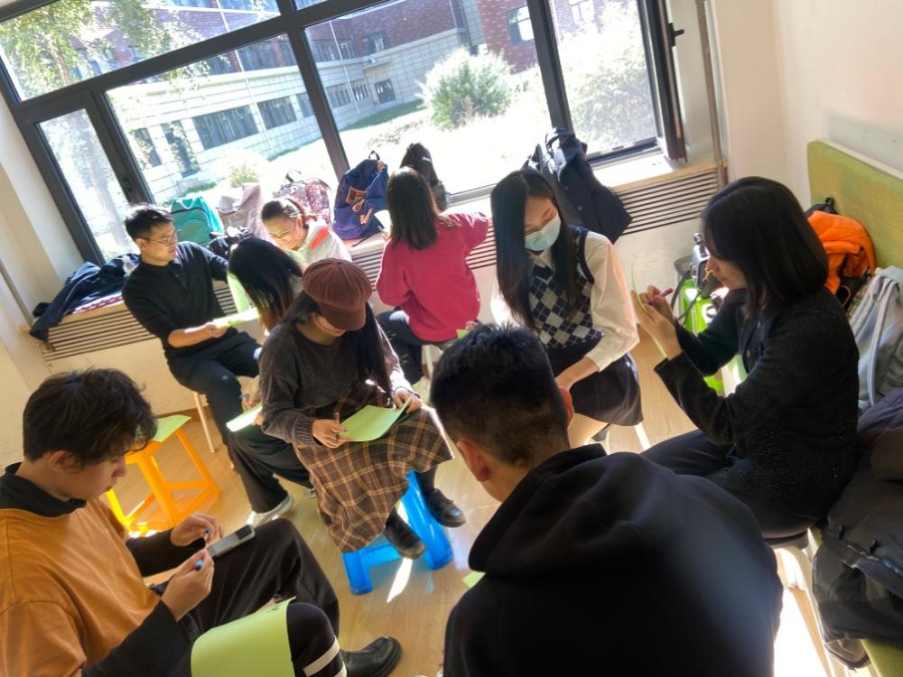 本次活动分为三个阶段,每场历时70分钟左右。第一阶段是热身阶段,同学们先猜想自己可以在一分钟内鼓掌多少次,再验证自己的猜想。同学们的实际鼓掌次数和自己的预期相比往往有出入,大家通过这个简单的活动明白了正确认识自我潜力、确定合理目标的重要性。之后,同学们进行了“我知道”活动。在这个环节中,每个人以问答的方式了解彼此的姓名、家乡、以及兴趣爱好,增进了对彼此的了解,也让同学们意识到关注自己更要关注别人,有利于团队的形成。到了过渡阶段,“信任之旅”每组选两名同学一人充当“盲人”蒙住眼睛,由“引路人”带着通过路障,看似简单的路障在眼罩蒙住眼睛的情况下也困难了起来,全靠两人之间的信任和配合。“集体登陆”游戏,每组同学要努力踩在狭小的道具上,这个环节让同学们切身体会到了配合的重要性,增强了整个团队的凝聚力。接下来进行了“人体字母”的小游戏,组内成员进行合作,用身体摆出“LUCKY”等单词。“快乐传递”环节,每个人获得了所有小组同学对自己的印象评价,使大家明晰自己在团队成员心中的地位和价值并发现彼此的长处和优点。“信心启迪”,每人写三件研究生期间最想做的事并在同学间分享,作为指引日后学习生活的目标和动力。在活动的结束阶段,同学们发挥自己的想象力,共同绘制了团体树,并且合影留念,活动在欢声笑语中圆满结束。