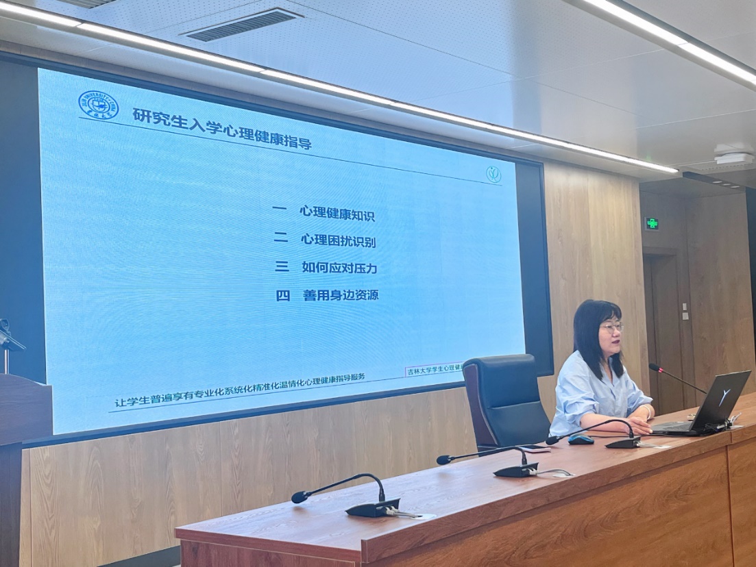 学生心理健康指导中心副主任朱丽雅老师,为研究生新生进行新生入学心理健康教育,2023级全体研究生参加了本次讲座。