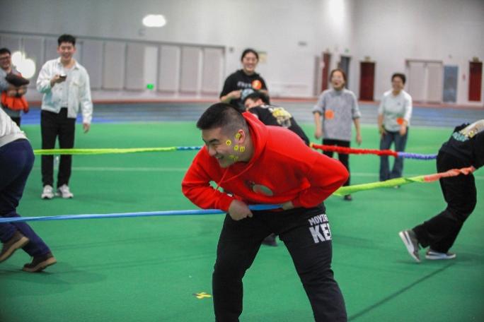 活动共分为“拔河对抗赛”、“一圈到底”、“绑腿赛跑”、“群雄逐鹿”、“袋鼠跳跳”和“撕名牌大战”六个项目。“拔河对抗赛”以班级为单位进行组队,并逐出冠亚季军,各班默契十足、齐心协力。